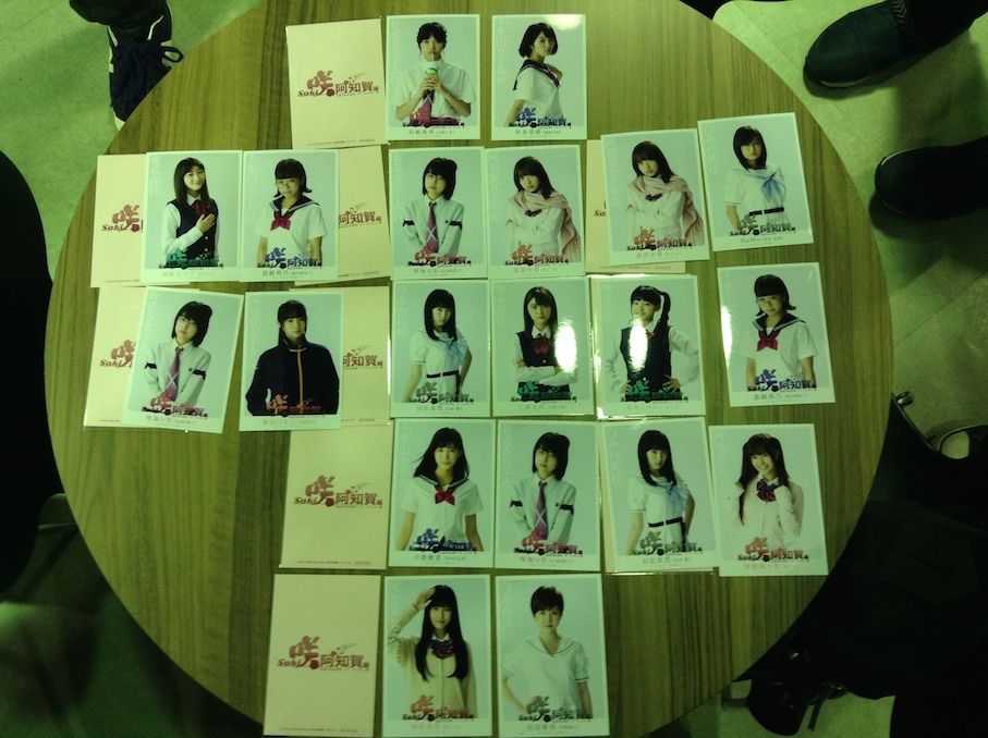 みんなで30セットくらい買ったのですが、妙に美子が出てきたり、それだけ買っても淡ちゃんやすばら先輩が出てこなかったりと大分偏りがある気がします。コンプ目指してる人は、別の劇場で2〜3回に分けて買うとか考えた方がいいかもしれません。